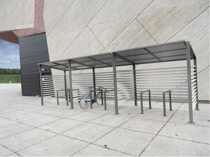Zu unseren Fahrradanlehnbügeln bieten wir, die dafür speziel konzipierten Unterstellboxen an. Eine jede Unterstellbox ist 2,26m lang, 1,81m breit und 2,28m hoch und bietet Platz für zwei Fahrradanlehnbügel. Dabei können beliebig viele Unterstellboxen miteinander kombiniert werden. Darüber hinaus bieten wir eine vielzahl an Ausführungen bei Konstruktionsmaterial sowie Seiten- und Rückwänden an.